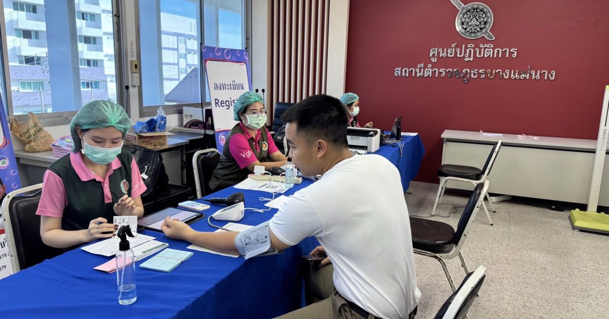 พร้อมด้วยข้าราชการตำรวจ ในสังกัด เข้ารับการตรวจสุขภาพประจำปีข้าราชการตำรวจ ประจำปีงบประมาณ พ.ศ.2568 จากโรงพยาบาลทหารผ่านศึก ณ ห้องประชุมชั้น 3 ที่ทำการ สภ.บางแม่นาง ต.บางใหญ่ อ.บางใหญ่จว.นนทบุรี