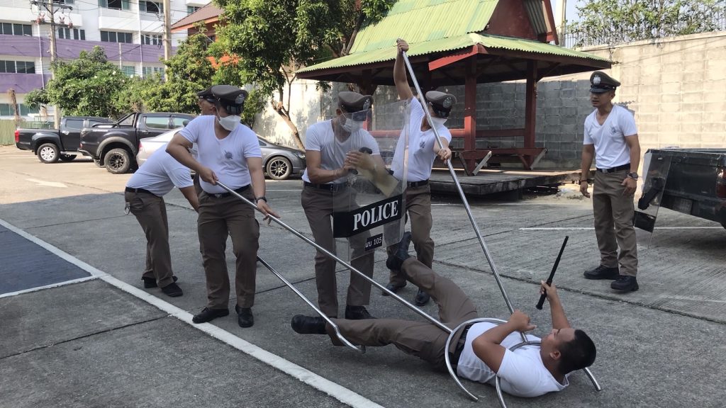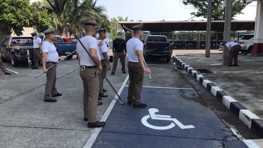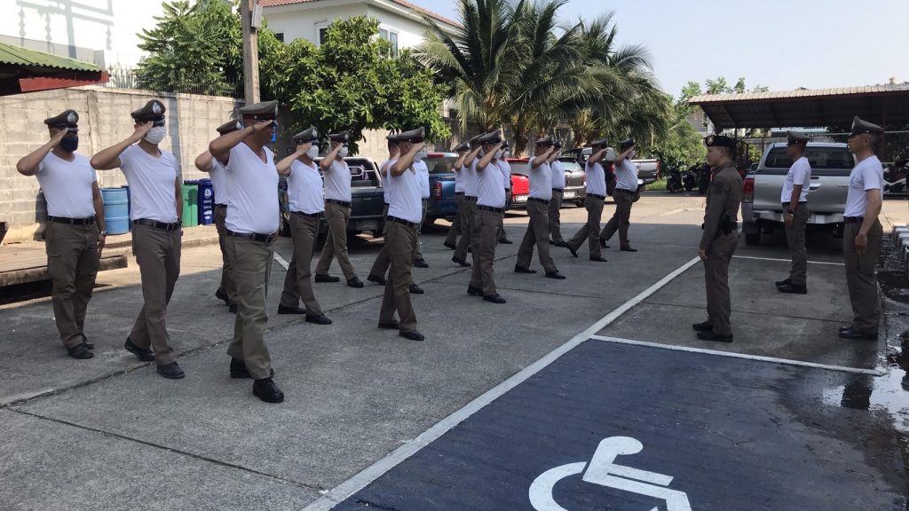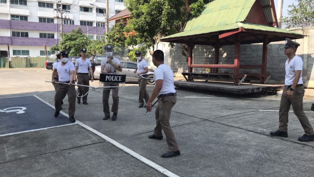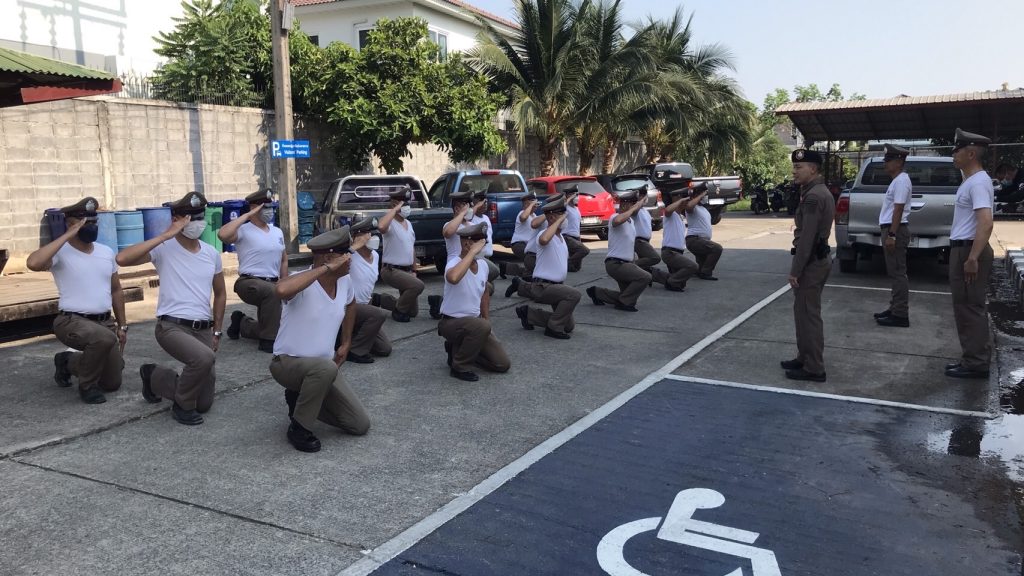 โดย พ.ต.อ.ธรรศกร ก้อนทอง ผกก.สภ.บางแม่นาง มอบหมายให้ พ.ต.ท.สมัชชา มหาพรหม รอง ผกก.ป.สภ.บางแม่นาง เป็นผู้ควบคุมการฝึก โดยมี พ.ต.ท.ธีรวุฒิ อนุวัตสมบูรณ์ สวป.สภ.บางแม่นาง ร.ต.อ.บรรดิษฐ์ ศรีวะรมย์ รอง สวป.สภ.บางแม่นาง ครูฝึก ได้นำข้าราชการตำรวจในสังกัดจำนวน 15 นาย ฝึกแถวประจำสัปดาห์ และยุทธวิธี ดังนี้
