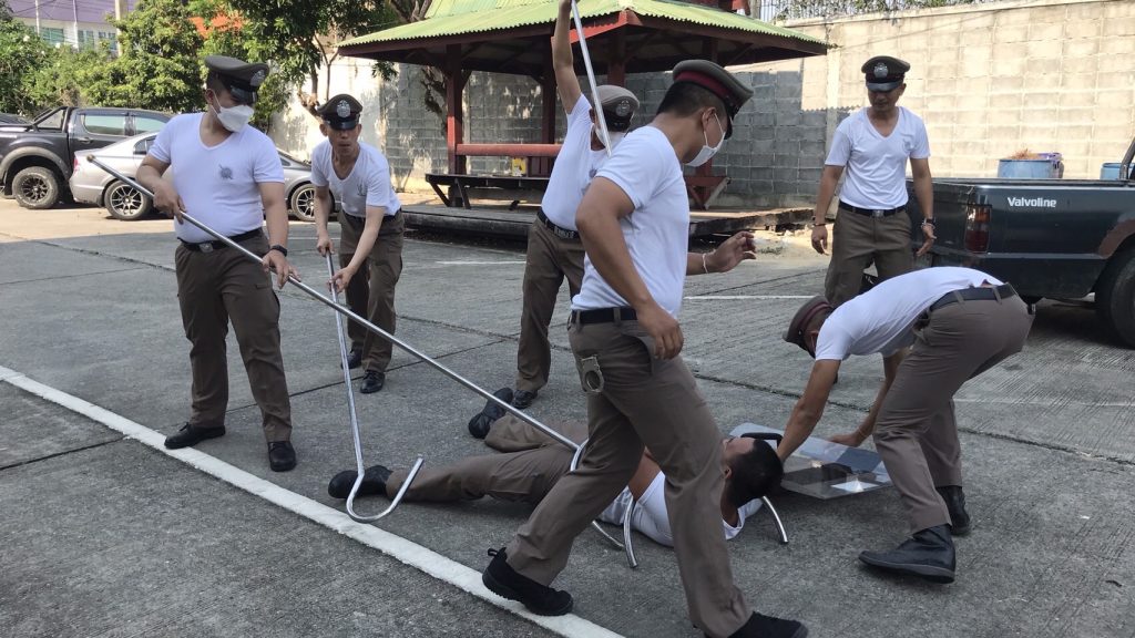 - การฝึกยุทธวิธี ในการเข้าเผชิญเหตุแบบไร้การสูญเสียด้วยไม้ง่าม