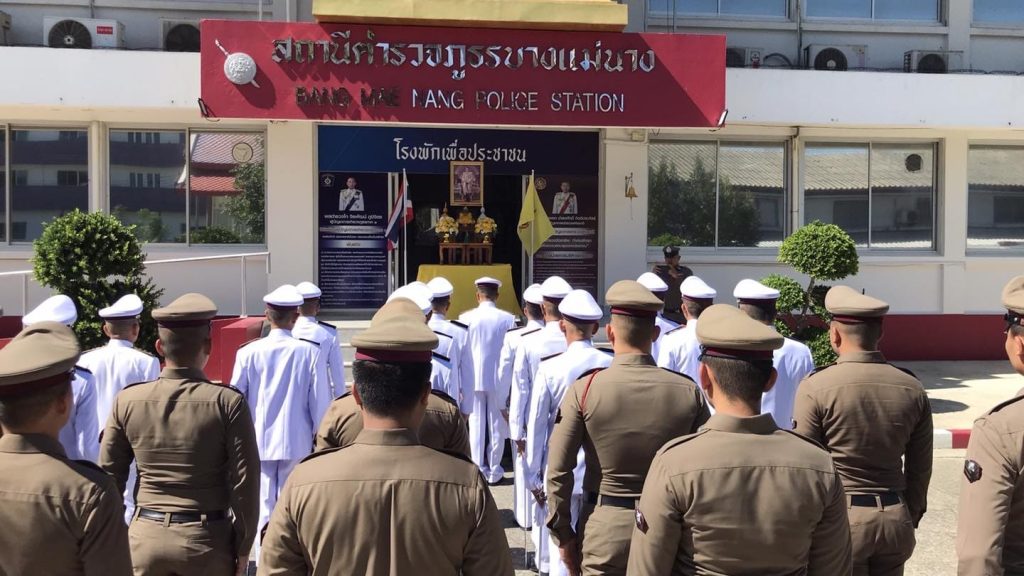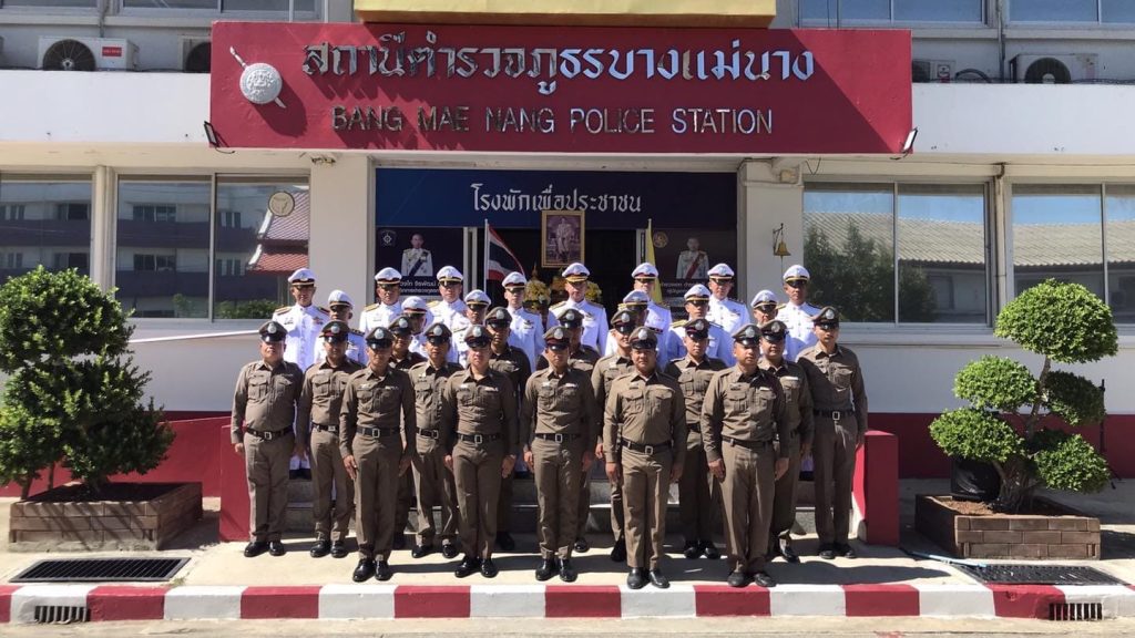 โดยมี พ.ต.อ.ธรรศกร ก้อนทอง ผกก.สภ.บางแม่นาง เป็นประธานในพิธี