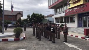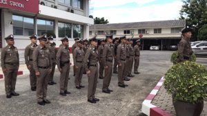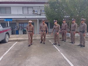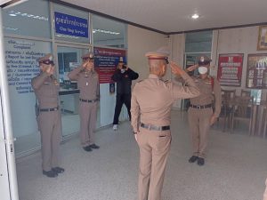พร้อมข้าราชการตำรวจ สภ.บางแม่นาง รอรับการตรวจ