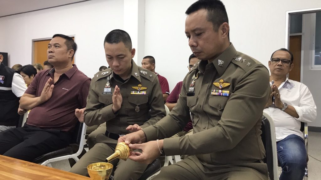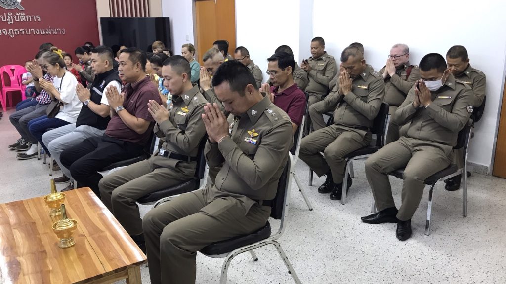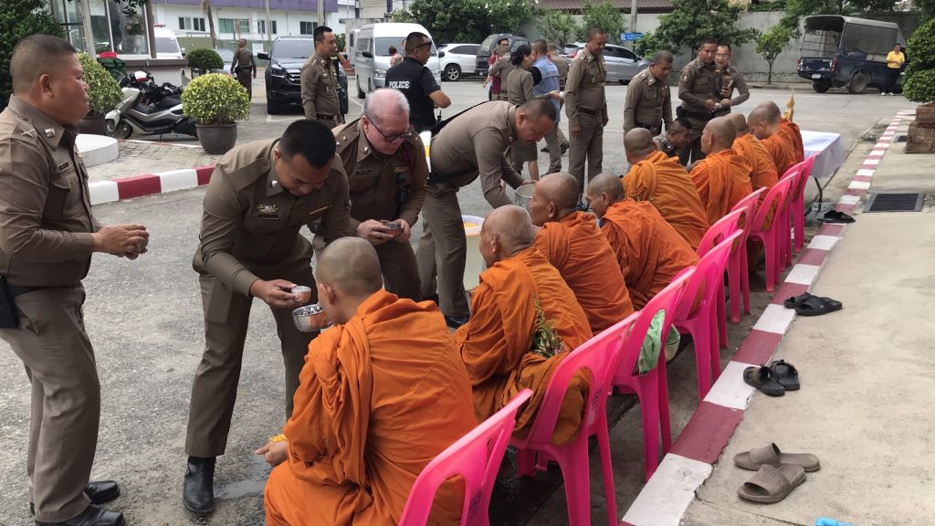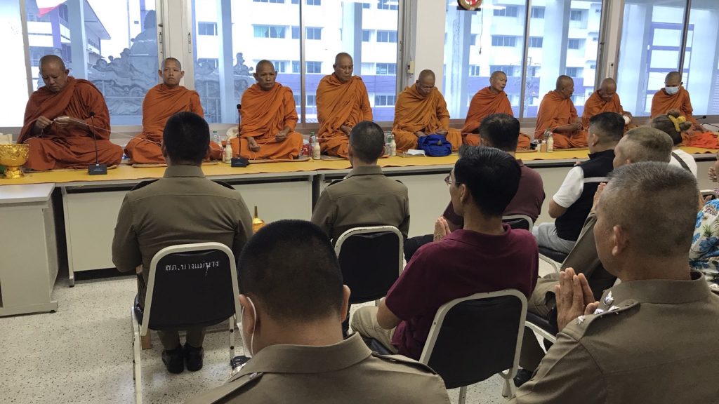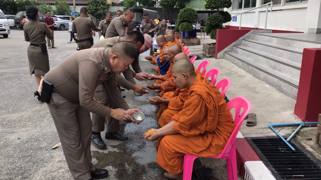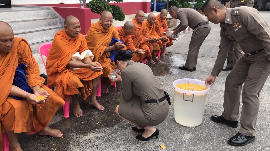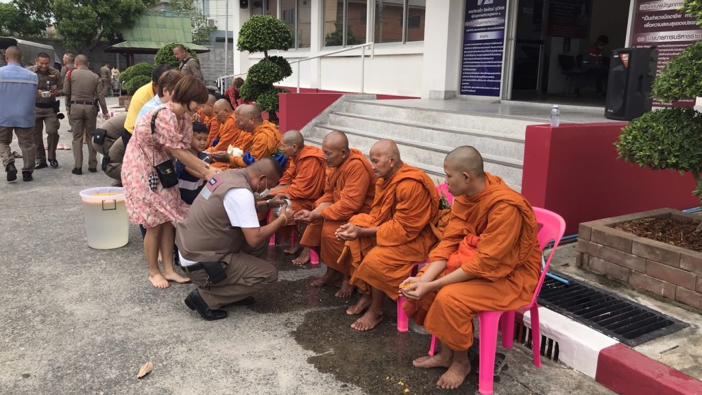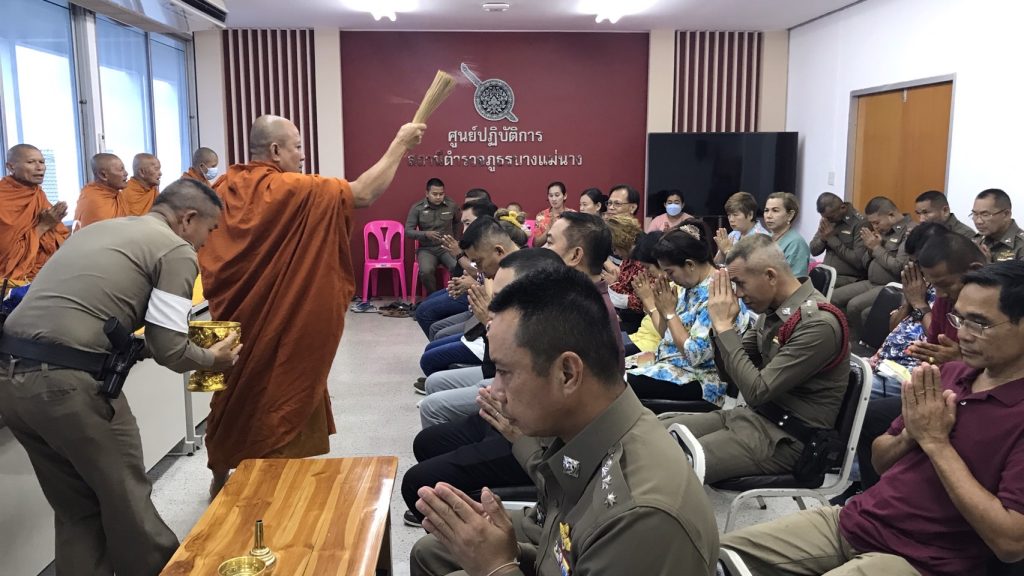 วันนี้ 7 เม.ย.66 เวลา 10.00 น. สภ.บางแม่นาง โดย พ.ต.อ.ธรรศกรร ก้อนทอง ผกก.สภ.บางแม่นาง พร้อม กต.ตร. และที่ปรึกษา กต.ตร.สภ.บางแม่นาง ได้ทำบุญตักบาตรเลี้ยงพระเพล และสรงน้ำพระ เนื่องในเทศกาลสงกรานต์ ประจำปี 2566 เพื่อเป็นการสืบสานประเพณีอันดีงามของไทย และเพื่อเป็นสิริมงคลแก่ข้าราชการตำรวจ ณ สถานที่ทำการ สภ.บางแม่นาง