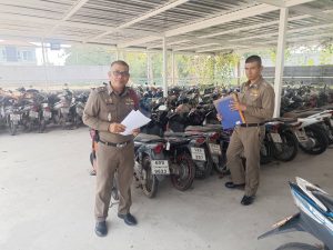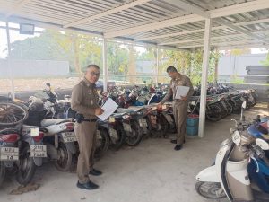 2. รถจักรยานยนต์คดีอาญา จัดเก็บของกลางไว้ในโรงเก็บของกลางรถบริเวณหลังที่ทำการสถานีสภ.บางแม่นาง