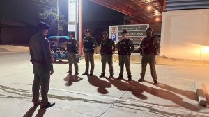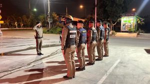 อบรมชี้แจงข้อราชการและปล่อยแถว ก่อนออกตรวจเพื่อป้องกัน อาชญากรรม ยาเสพติด และการแข่งขันรถในทาง