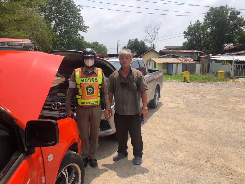 -ได้สังเกตเห็นรถยนต์ยนต์กระบะ จอดเสีย อยู่บริเวณบริเวณบริษัทสยามไบโอฯ ตรวจสอบพบว่า ระบบแบตเตอรี่ เสื่อม สตาร์ทไม่ติด จึงให้ความช่วยเหลือรถยนต์ จนสามารถขับเคลื่อนต่อไปได้