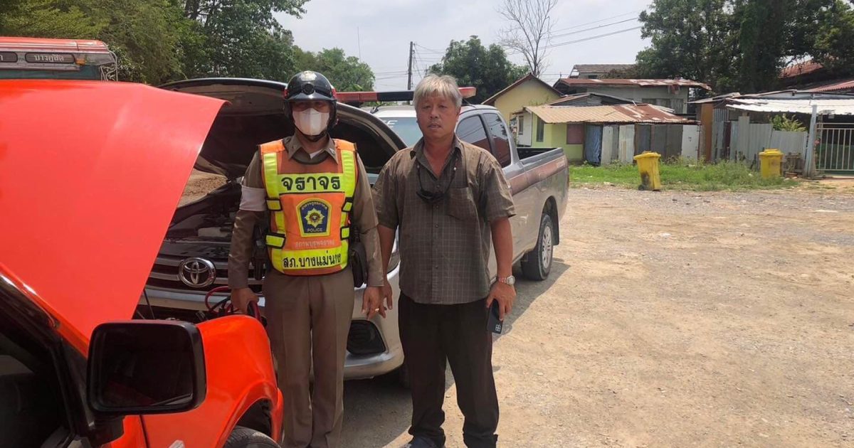 -ได้สังเกตเห็นรถยนต์ยนต์กระบะ จอดเสีย อยู่บริเวณบริเวณบริษัทสยามไบโอฯ ตรวจสอบพบว่า ระบบแบตเตอรี่ เสื่อม สตาร์ทไม่ติด จึงให้ความช่วยเหลือรถยนต์ จนสามารถขับเคลื่อนต่อไปได้