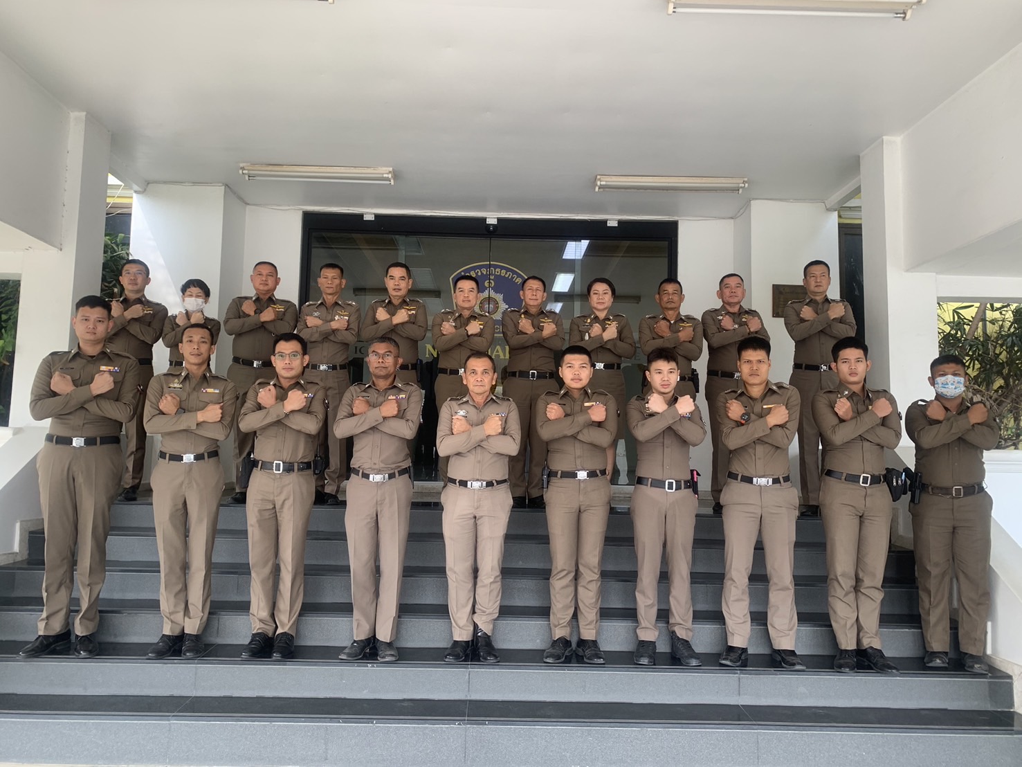 พ.ต.อ.ธรรศกร ก้อนทอง ผกก.สภ.บางแม่นางประกาศเจตนารมณ์ของหน่วยงาน  ประกาศเจตนารมณ์ ในการป้องกันการและต